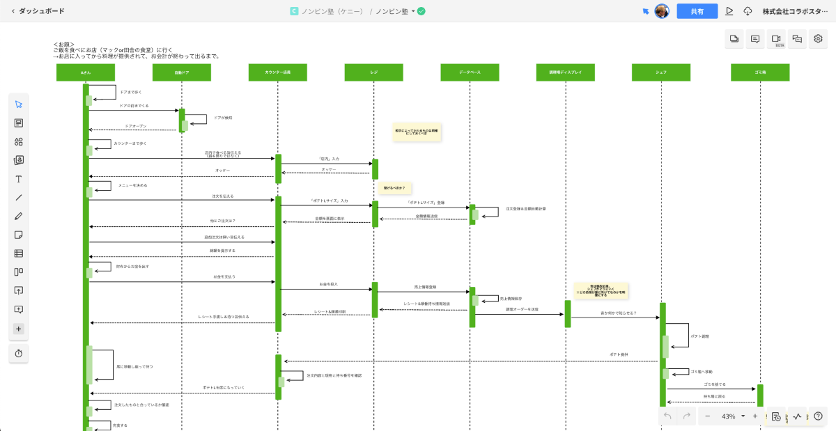 開発部でも、若手エンジニア向けに「ノンビン塾」を開催し、フローチャートやシーケンス図などのレクチャーを行っています。私たち自身もCacooのファンとして、個人の思考整理やチーム内のブレストに幅広く活用しているんです。