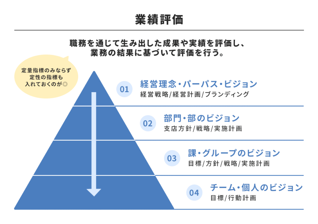 1つめは、どのような基準で評価が行われているのかが可視化されることです。何が評価対象になっているのか、達成基準はどう設定されているのか、といった点を明示できます。