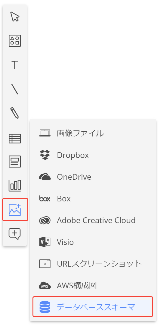 Cacooのデータベーススキーマ構成図の挿入機能は以下の手順で利用できます。