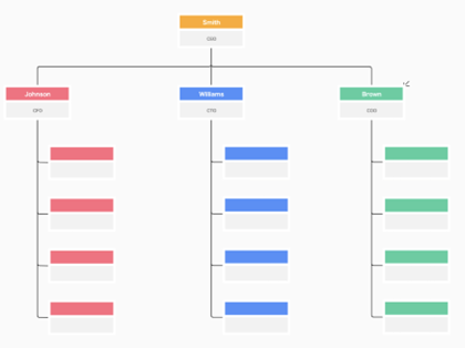 役割、責任、個人同士の関係といった組織の内部構造をシンプルに視覚化できるテンプレートです。各チームメンバーの組織内における立ち位置や、責任レベルを一覧で示したい場合に適しています。事業拡大に向けた予算編成や指揮系統の理解促進をはじめ、メンバーの役職の把握に役立てたい場合におすすめです。