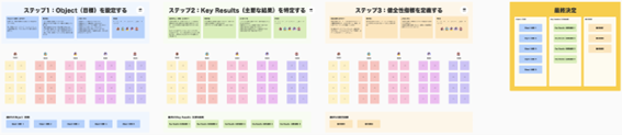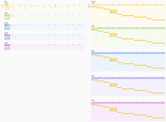 長期的な目標を整理し、達成に向けた道筋を明確にするためのテンプレートです。大きな目標を小さなステップに分けられるため、何から実行すればよいのかがわかりやすくなります。明確なロードマップがあることで、チームの集中力やモチベーションも維持しやすくなるでしょう。具体的なマイルストーンと戦略を設定したいとき、事業成長の方向性を明確にしたいときにおすすめです。