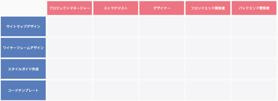RACIチャート(責任分担マトリクス)は、チームメンバーの責任を明確にするためのテンプレートです。Responsible(実行責任者)、Accountable(説明責任者)、Consulted(協業先)、Informed(報告先)の役割を可視化します。事業拡大に向けてどの段階で誰が何をするのかを一覧化したい場合や、関係者に情報を提供して円滑な進行に役立てたい場合におすすめです。