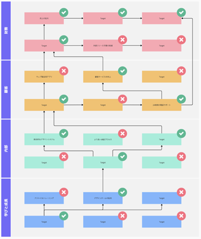 こうした検証は各人が頭の中で行うだけでなく、誰が見てもわかる形にして示し、共通認識を形成しながら進めることが非常に重要です。計画や戦略、組織体制を可視化して共有化を図ることは、事業拡大に向けた第一歩となるでしょう。