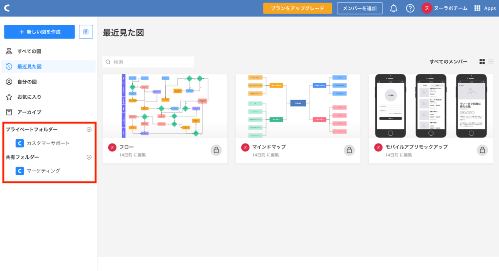 プライベートフォルダーは無制限に作成でき、複数の図を個別のフォルダーにまとめて管理できるようになります。