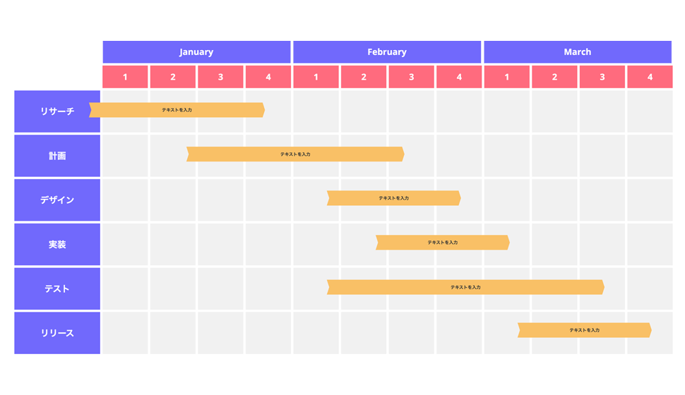 ガントチャートは、プロジェクトのスケジュールやタスクの進捗状況を視覚的に表現する図です。プロジェクトの計画や進捗管理などチームでの意思疎通を円滑に進めるために活用することができます。
