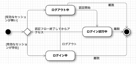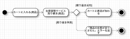 開始と終了のノードがあるため、見た目がステートマシン図と似て見えますが、内容は全く異なり、ある一つの処理に注目してそれが始まってから終わるまでを記述しています。