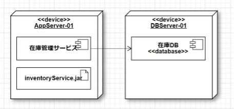 配置図は、物理的なハードウェアの配置構造と、その内部のコンポーネント、コンポーネント間の通信関係を図式表現したものです。