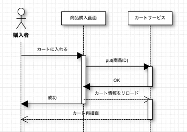 細かい記法はいろいろありますが、ユーザーやコンポーネント単位での相互作用を示すシーケンス図は技術者以外が見てもわかりやすいです。