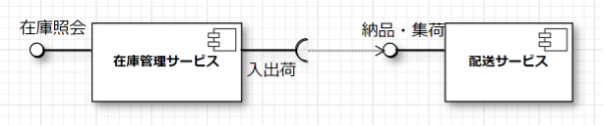 コンポーネントは外部からアクセスできる提供インターフェイスと、他のコンポーネントの機能を必要とする要求インターフェイスがあります。
