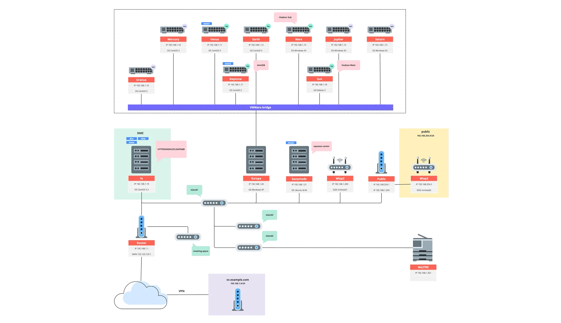 ネットワーク構成図のテンプレートや図形を豊富に用意